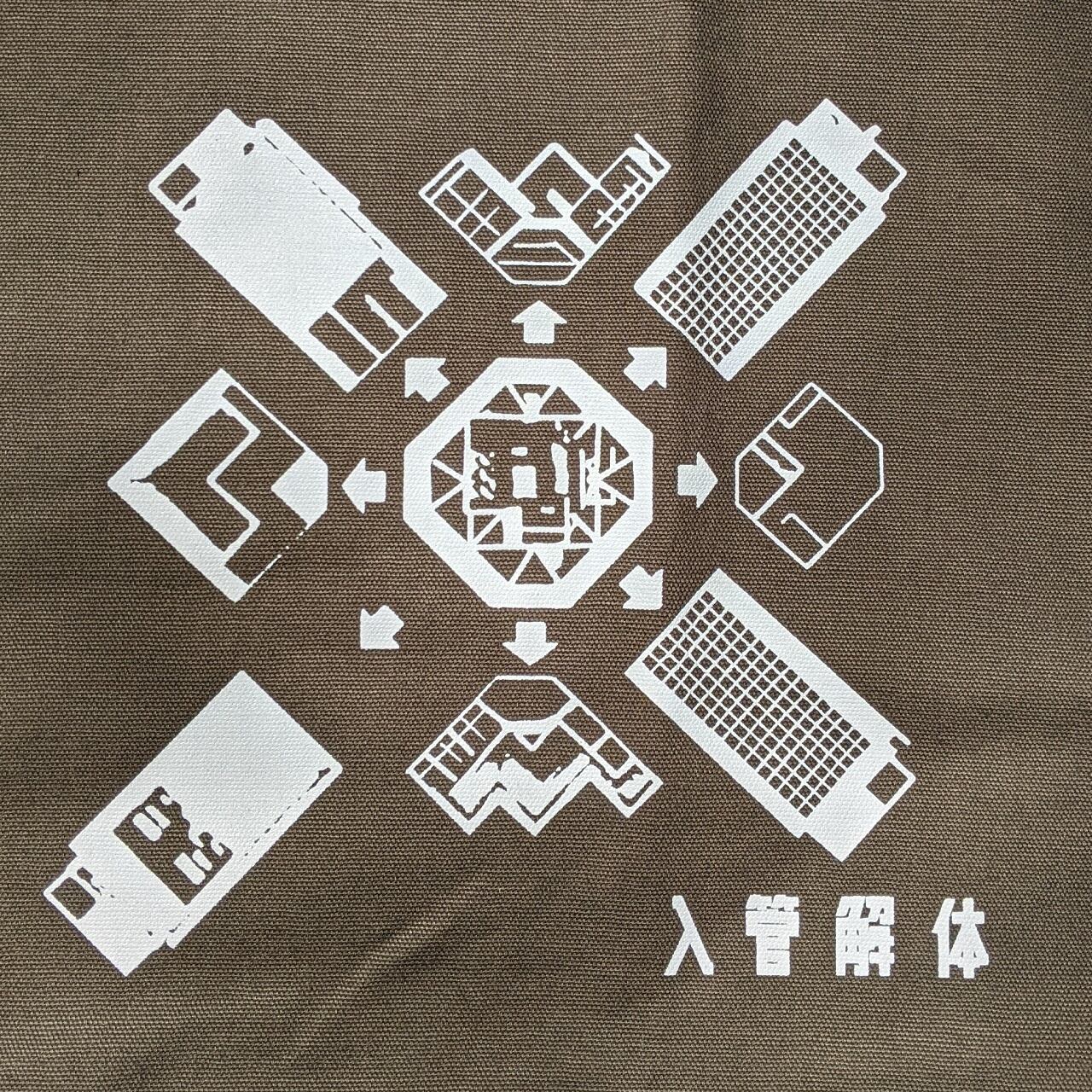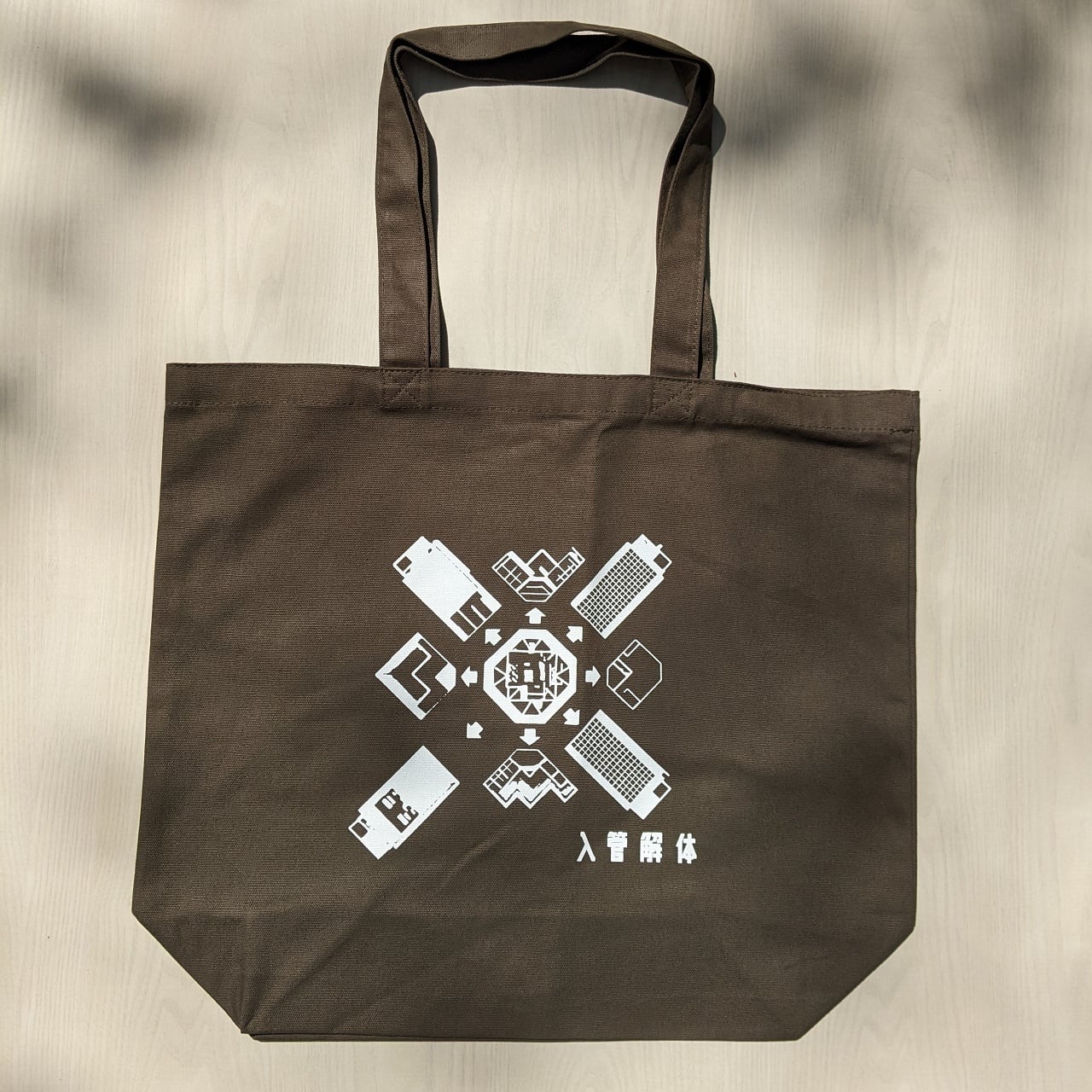 上空から見た東京入管を解体する図案のキャンバストートバッグ。片面シルクスクリーンプリントです。プリント色はブラック。